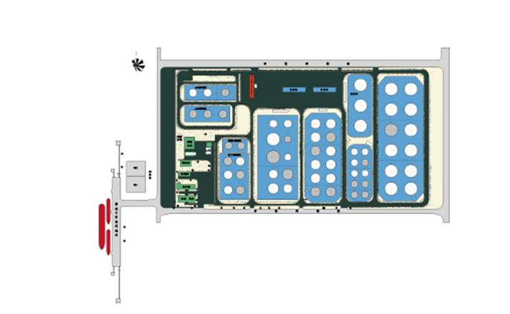 擁有各類儲罐24個,總罐容7.96萬m3。其中立式儲罐22個(7.36萬m3),壓力球管2個(0.6萬m3)。